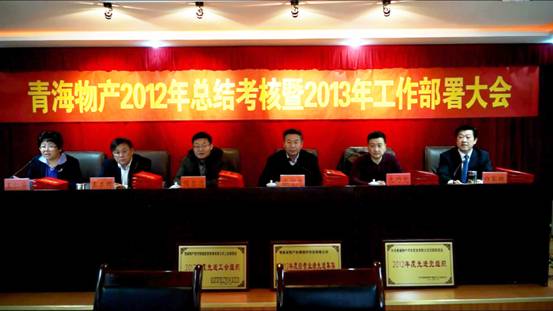 2013年1月25日,集團總公司在集團一號會議室召開"青海物產2012年總結考核暨2013年工作部署大會"。集團領導,集團中層干部,受表彰的先進個人、職工代表及退休干部代表參加會議,省國資委領導張守杰帶領考核小組蒞臨大會。