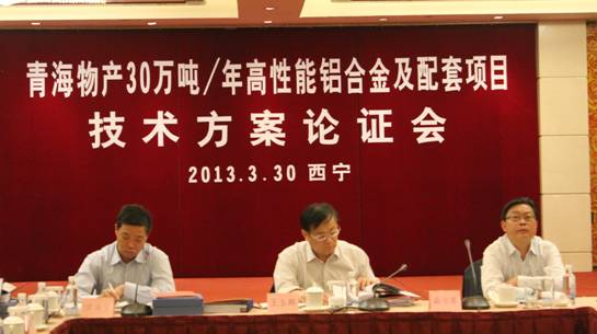 青海物產工業(yè)投資有限公司30萬噸/年高性能鋁合金及配套項目技術方案論證會于2013年3月30日-31日在青海西寧召開,省物產集團總公司總經(jīng)理王玉輝、黨委書記白家林、北川工業(yè)園管委會副主任薛萬革、鋁合金、炭素行業(yè)的9位特邀專家,物產工投高級經(jīng)濟師常海寧、西北鋁高級工程師張學平、瑞敏教授級高工黃金法、云南云鋁高級工程師車立志、東方希望教授級高工王堅、青海鑫恒高級工程師王雄、青海黃河再生鋁高級工程師陳蒲明、甘肅索通炭素高級工程師陳衛(wèi)國、物產工投高級工程師薛玉貴、貴陽鋁鎂設計研究院黨委書記呂維寧、副院長寧前進、沈陽鋁鎂設計研究院副院長劉敬及相關主設人員、項目建設單位代表等共53人參加了會議。專家委員會推選由常海寧擔任主任委員、張學平擔任副主任委員。